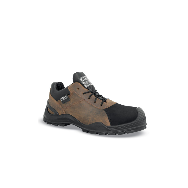Les chaussures de sécurité Artis 7AX70 de la marque d'EPI Aimont sont des chaussures basses, atteignant le niveau de protection S3 CI SRC. De coloris marron et noir, ces chaussures possèdent un double renfort de protection avec une remontée de la semelle en PU et en Stark ultra résistants à l'abrasion.