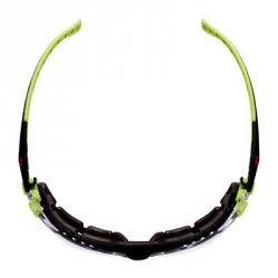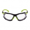 Lunettes de protection 3M Solus 1000 avec branches vertes et noires et oculaire incolore en polycarbonate.